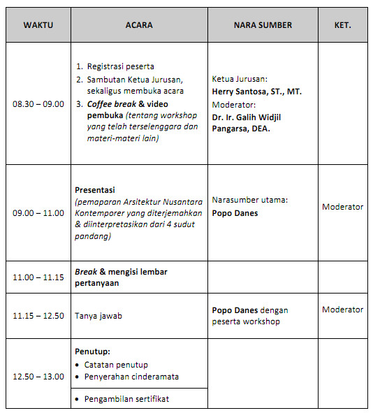 Tempat : Gedung Kuliah Jurusan Arsitektur, Lt.2, Rg.B.2.3